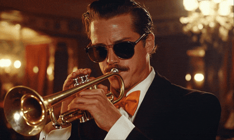 Uttering a pompous trombone-note;